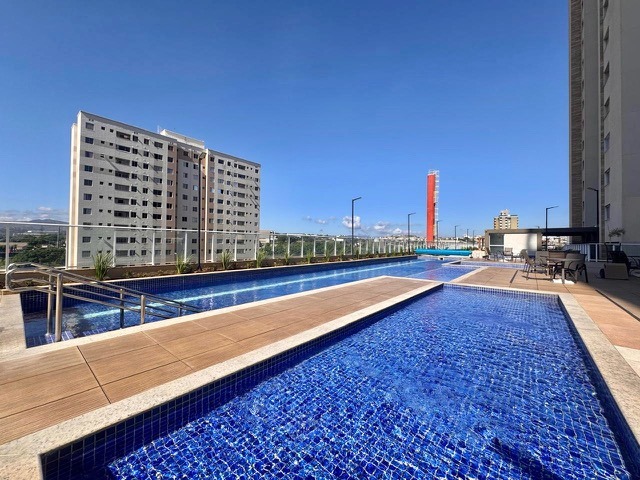 Excelente prédio situado no condomínio fechado Sublime Oasis Spa Resort , possuindo 19 andares, 04 aptos por andar, elevador, interfone, portão eletrônico, porteiro 24hs, gás canalizado, aquecedor, 02 piscinas, espaço gourmet, (04) salões de festas, espaço gourmet com forno de pizza, academia, espaço kids, quadras poliesportivas, pet shop, jardim, 02 vagas em linha (solta/presa) cobertas e demarcadas.