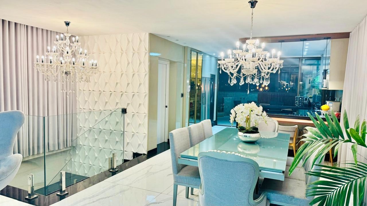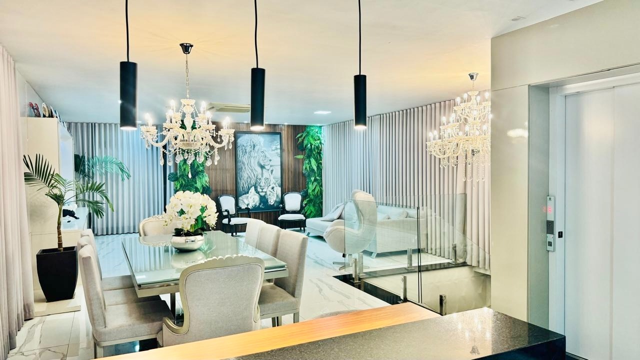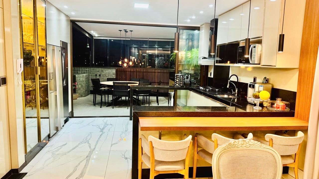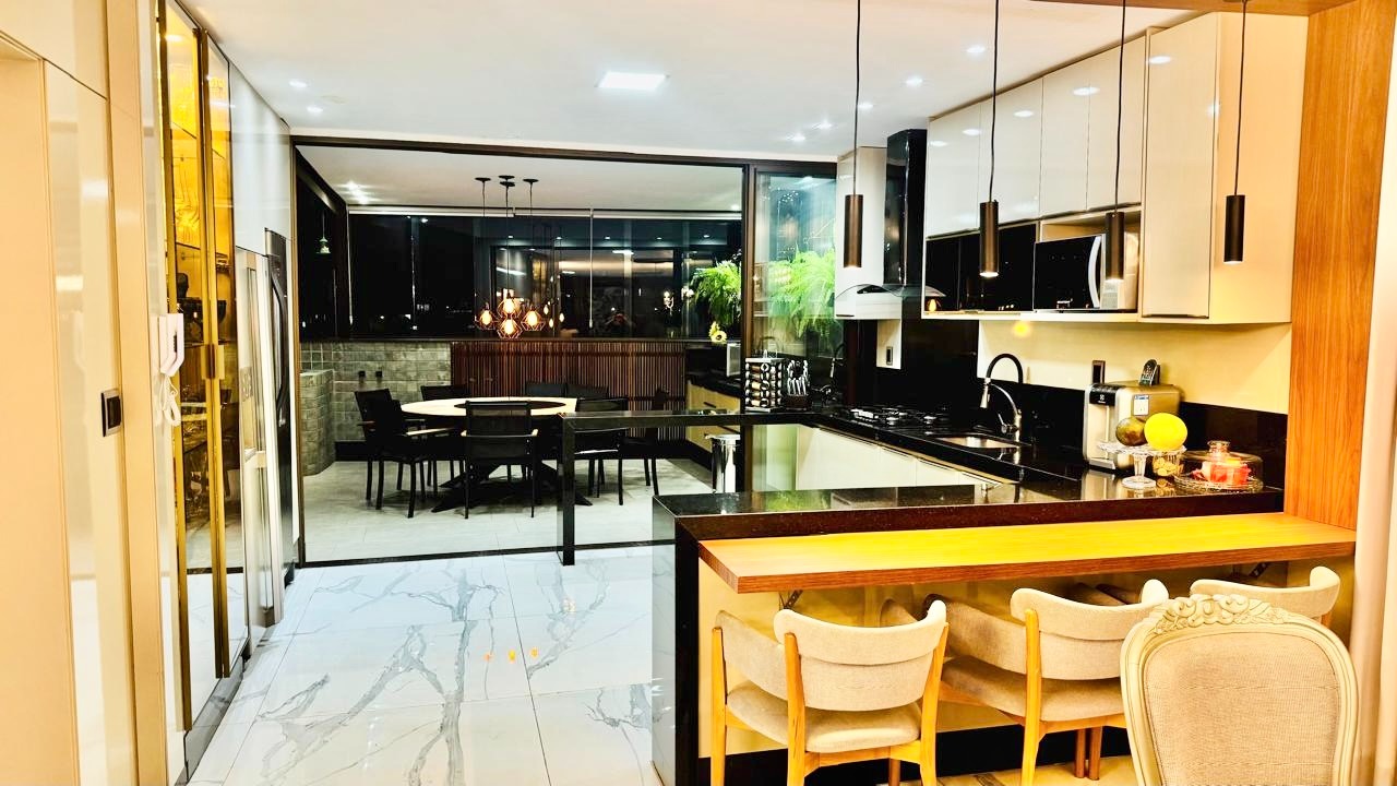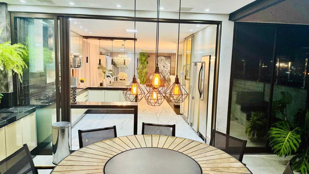 Maravilhosa Cobertura Duplex com decoração de ótimo bom gosto com aproximadamente 250,00 m² bem distribuídos ,sala com piso em porcelanato de alto padrão, teto rebaixado em gesso com projeto luminotécnico, 03 quartos sendo todos suítes e uma delas suíte master com closet, banheira de hidromassagem,02 chuveiros e dois lavatórios, piso em porcelanato, ar condicionado,01 banheiro social com piso e paredes em porcelanato, box em blindex, teto rebaixado em gesso, cozinha com piso em porcelanato, pia e bancada em granito, armários planejados de excelente qualidade, fogão cooktop, coifa e forno, sala de estar espaçosa,01 lavabo com piso e paredes em porcelanato, área de serviço, espaço gourmet com churrasqueira, pia em granito com armários, excelente Spa.
